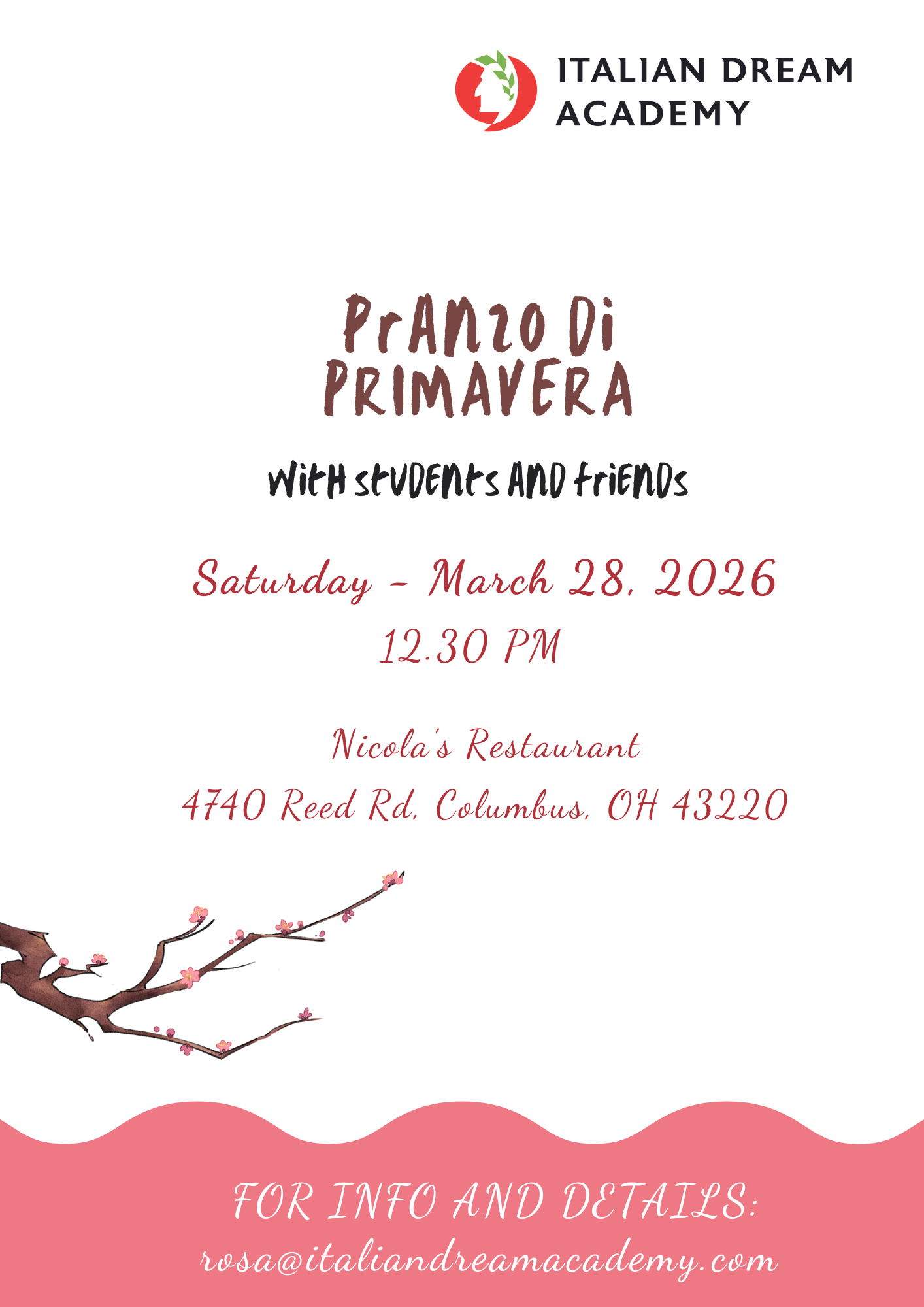March 28, 2026 – IDA Pranzo di Primavera – RSVP (rosa@italiandreamacademy.com)