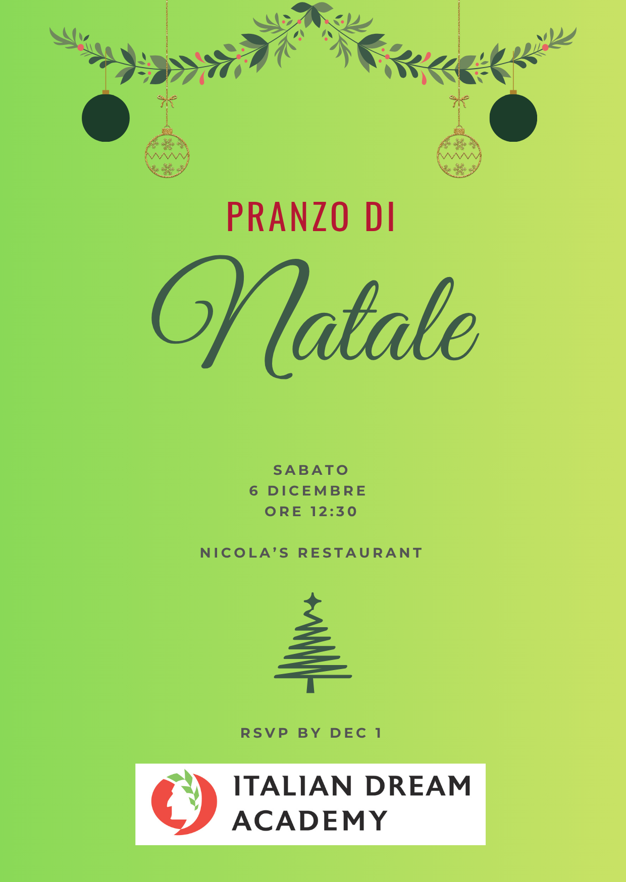 Saturday, December 6 – Pranzo di Natale at Nicola’s
