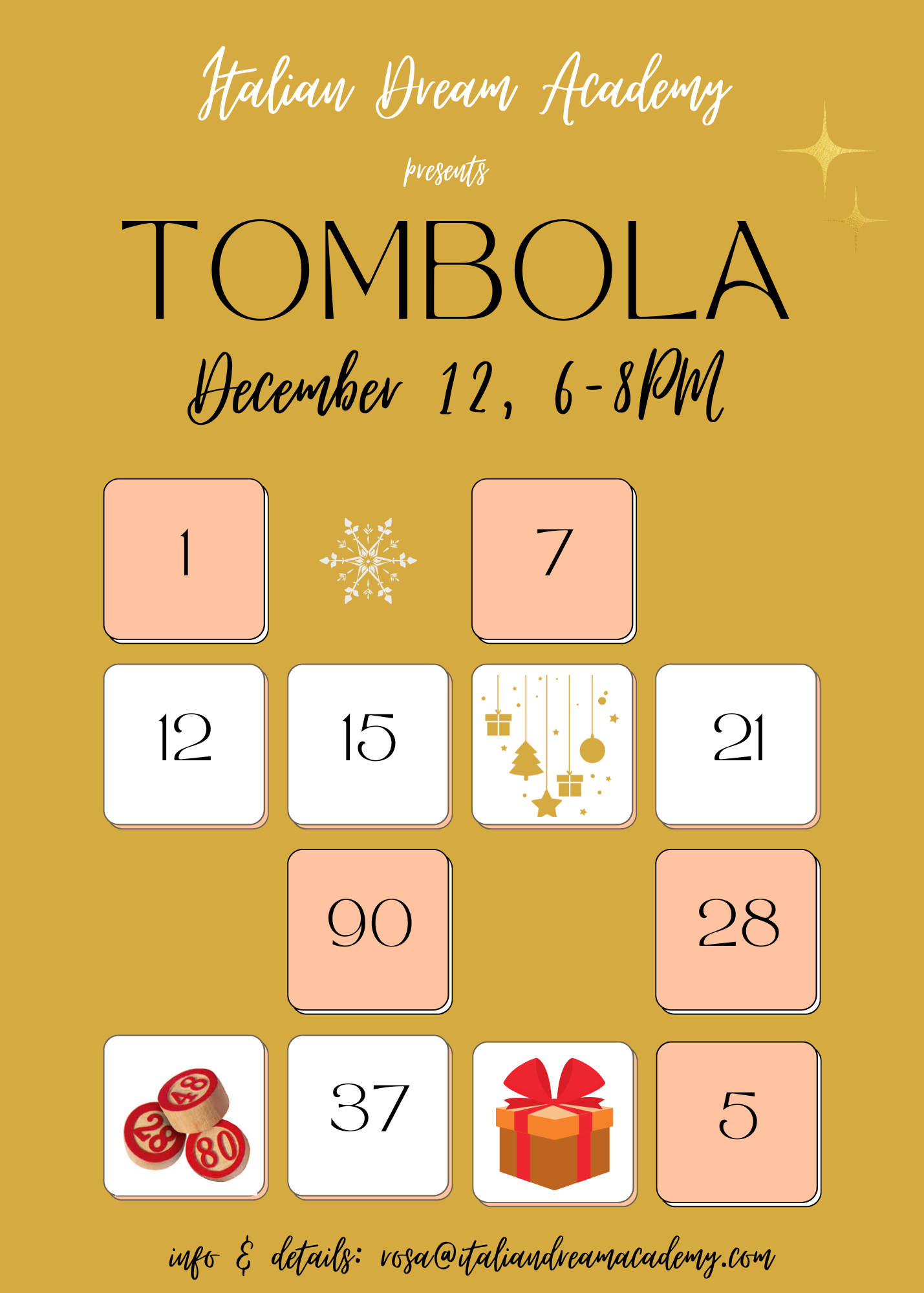 Whether you’re a long-time player or joining for the first time, Tombola Night is the perfect way to celebrate the season together, practice some Italian, and enjoy an evening of community and joy.